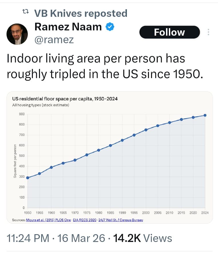 STAY INDOORS: Americans used to live in smaller houses. But I didn’t realize quite how much the size of our indoor living area had increased - it’s tripled.